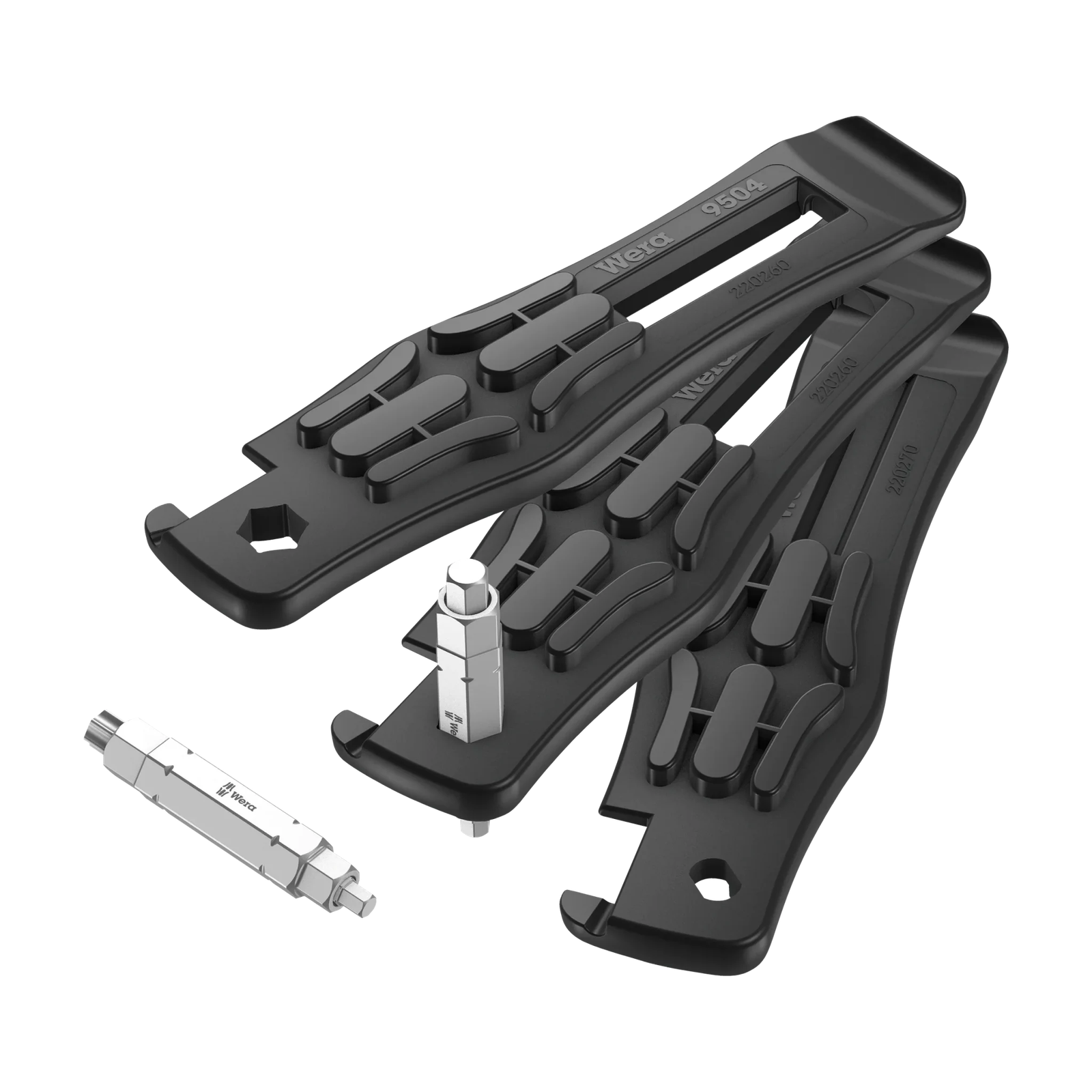 Das Highlight sind unsere innovativen 4-in-1 Bits, mit denen Du insgesamt sechs verschiedene Schraubprofile abdeckst. Die Reifenheber aus glasfaserverstärktem Kunststoff lassen sich zusammenstecken und dienen dann als Bit-Halter – so hast Du im Handumdrehen ein vollwertiges Schraubwerkzeug.